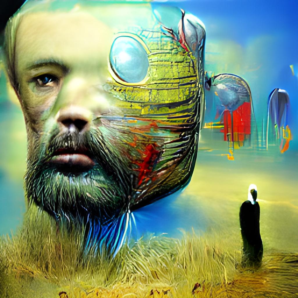 Prompt: Philip Kindred Dick, Beksinski (?)